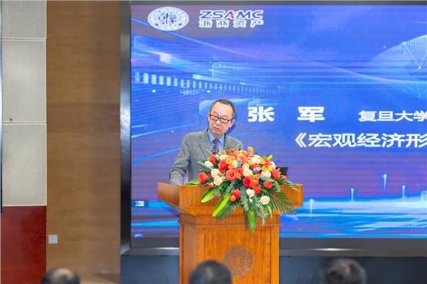 “金融系统风险与行为分析”主旨演讲环节结束后,浙商资产战略发展部总经理、研究院副院长冯毅博士主持了“不良资产系列教材与成果发布”环节。首先,他邀请复旦大学文科一级教授、复旦大学经济学院院长张军,浙商资产副董事长、首席战略官、研究院院长李传全博士,复旦大学出版社副总经理王联合副总经理分别致辞。