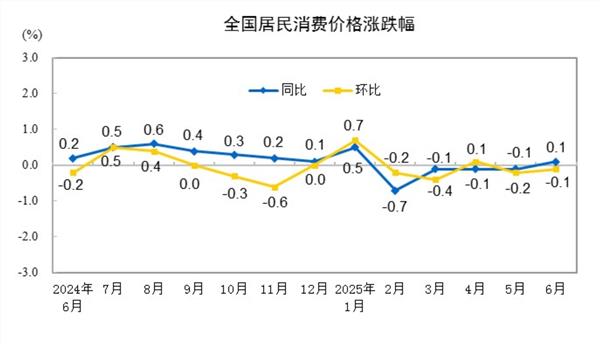(原标题:2025年6月份居民消费价格同比上涨0.1%)