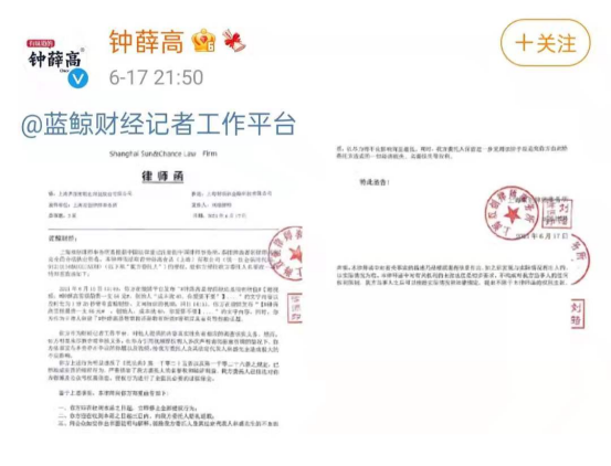 更值得注意的是,就在道歉声明后不久,钟薛高又发布了一则“律师函”,对“钟薛高是智商税还是物有所值”“钟薛高最贵一支66元”等词条的创建方及相关文字、视频内容提出异议,要求“立即停止全部侵权行为”“赔礼道歉”等。
