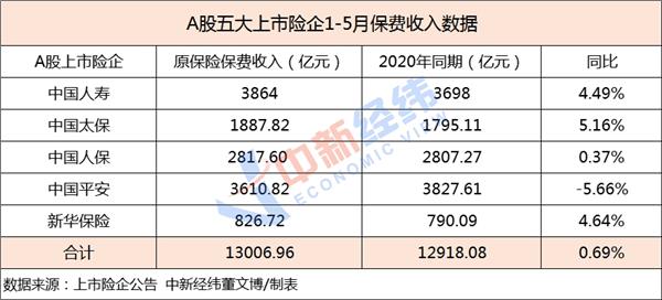 除了市值缩水,五大上市险企的保费同样承压。