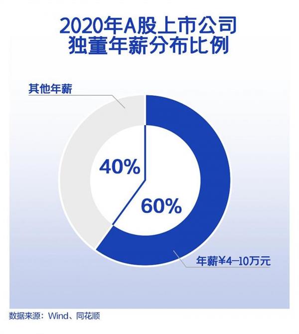 成为一家上市公司的独立董事后,能获得相应的报酬。Wind数据显示,以2020年度为例,约六成A股公司的独董能拿到的年薪在4万元到10万元之间。而在康美案所涉及的5名独董中,江镇平的独董年薪约7.1万元,其余4人的年薪,也仅十万元左右。