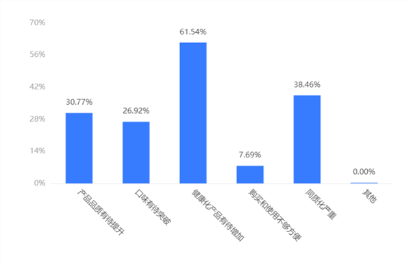 从目前看,消费者最关注的是调味品的健康化。61.54%的消费者认为调味品行业健康化产品有待增加。