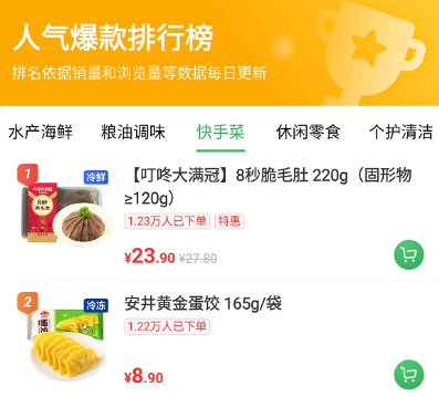 叮咚买菜人气爆款排行榜 图片来源:叮咚买菜APP