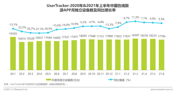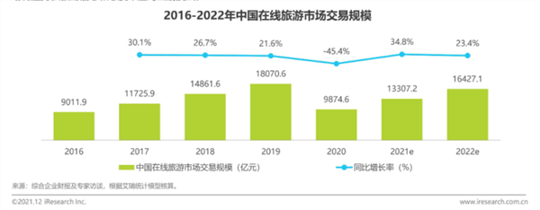 旅游行业是受疫情影响最为严重的行业之一,随着国内疫情的逐渐稳定,2021年在线旅游行业开始复苏,逐渐实现了恢复性增长。