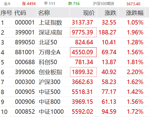 行业表现方面,上午地产板块大涨,消费股集体回暖,白酒、饮料、美容、家电等均有不俗表现。石油天然气、贵金属不振,光模块高开低走,ST板块多股大跌。
