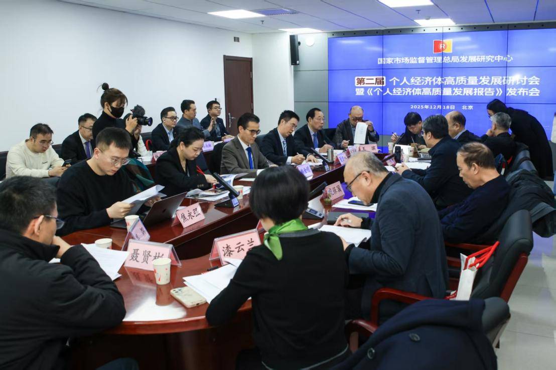 2025年12月18日,国家市场监督管理总局发展研究中心第二届个人经济体高质量发展研讨会在总局三里河办公大楼7楼会议室召开,此次会议发布了首份《个人经济体高质量发展报告》(以下简称《报告》)。