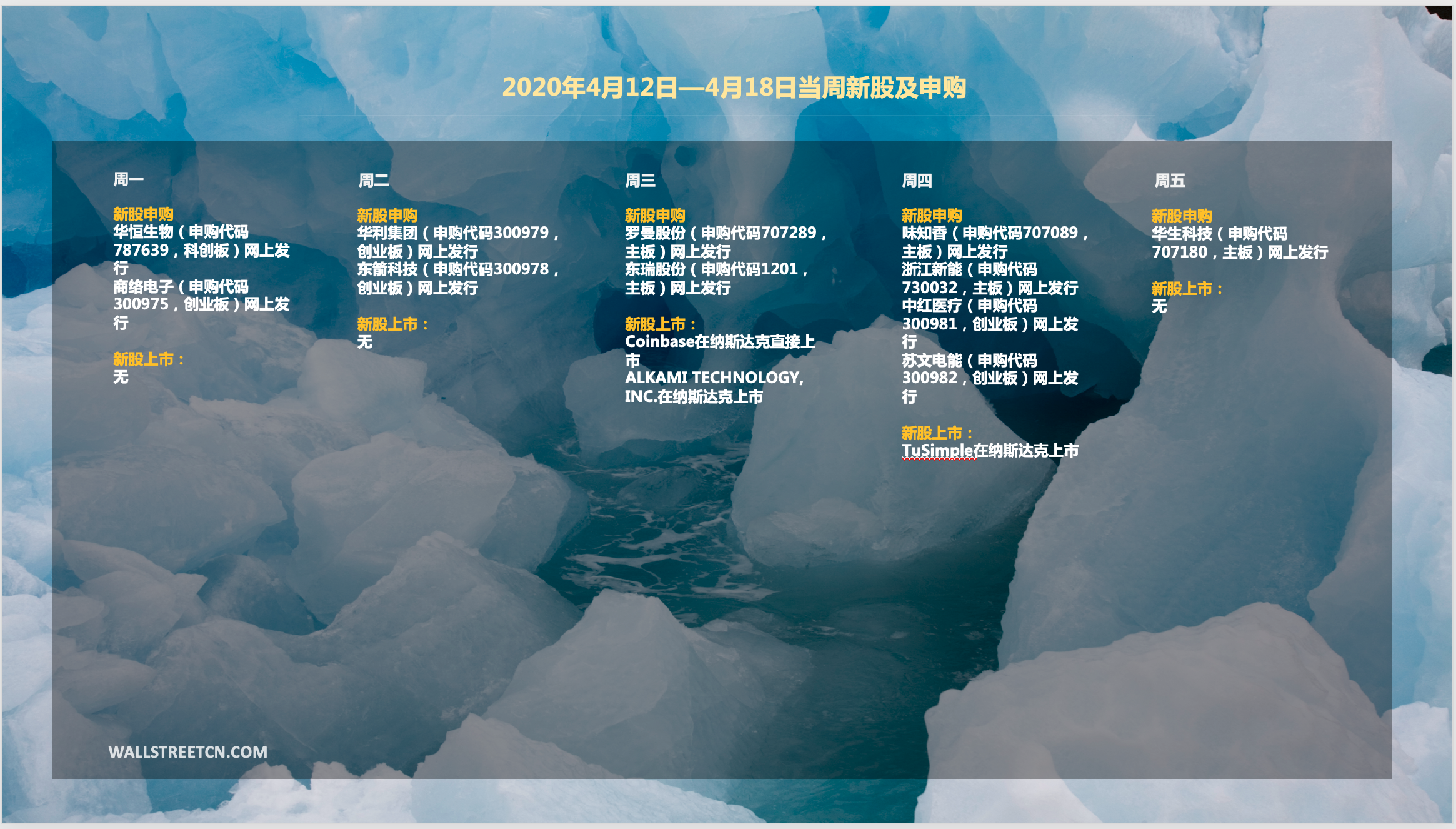 下周港股和A股新股清淡,美国最大加密货币交易所Coinbase将在4月14日于纳斯达克直接挂牌交易。自动驾驶卡车独角兽图森未来(TuSimple)计划于4月15日登陆纳斯达克。