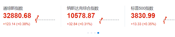 美股三大指数震荡上行。
