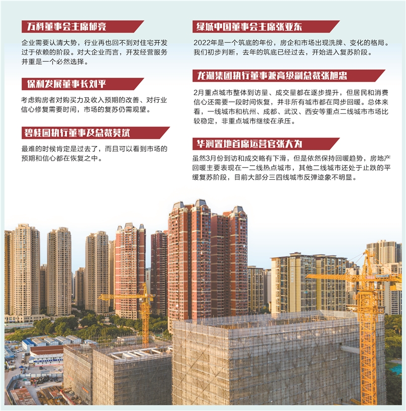 “2022年是一个筑底的年份,房企和市场出现洗牌、变化的格局。我们初步判断,去年的筑底已经过去,开始进入复苏阶段。”绿城中国董事会主席张亚东说。