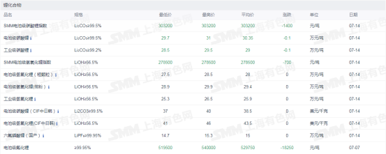 锂化合物现货价格
