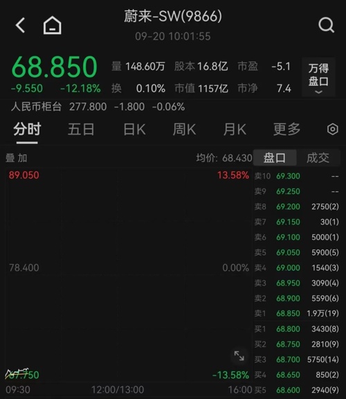 蔚来跌近14%,小鹏汽车一度跌超7%,理想汽车微跌。