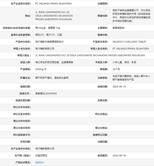 荷尔梅斯乐牌姜黄提取物片 国食健注J20250002